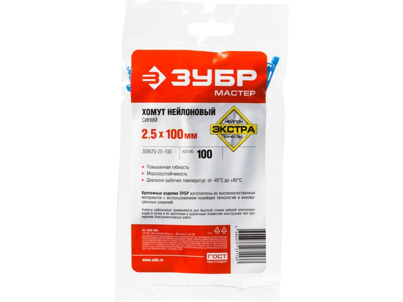Купить Хомуты нейлоновые ЗУБР МАСТЕР синие, 2,5 мм x 100 мм, 100 шт