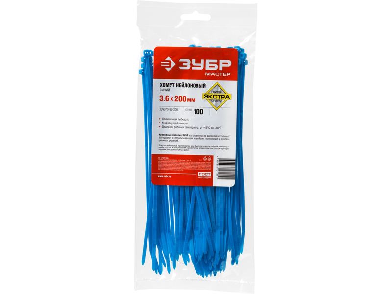 Купить Хомуты нейлоновые ЗУБР МАСТЕР синие, 3,6 мм x 200 мм, 100 шт