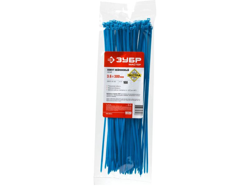 Купить Хомуты нейлоновые ЗУБР МАСТЕР синие, 3,6 мм x 300 мм, 100 шт