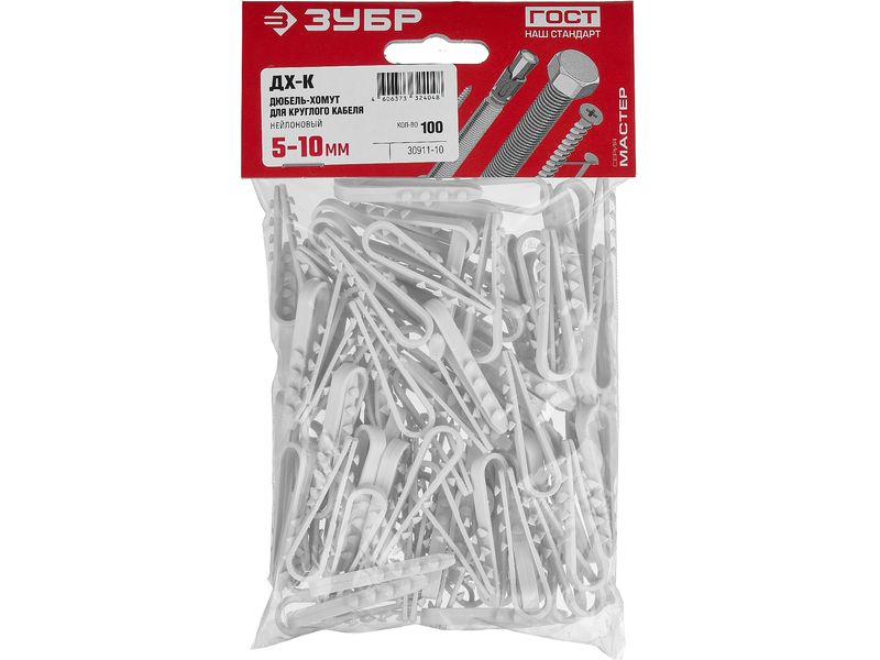 Купить Дюбель-хомут для круглого кабеля ДХ-К, 5 - 10 мм, 100 шт, нейлоновый, ЗУБР