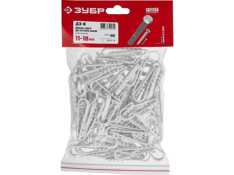 Дюбель-хомут для круглого кабеля ДХ-К, 11 - 18 мм, 100 шт, нейлоновый, ЗУБР