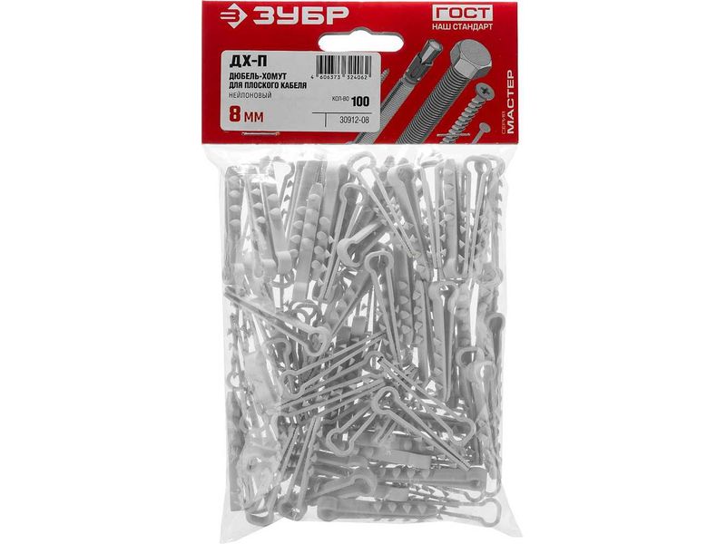 Дюбель-хомут для плоского кабеля ДХ-П, 8 мм, 100 шт, нейлоновый, ЗУБР