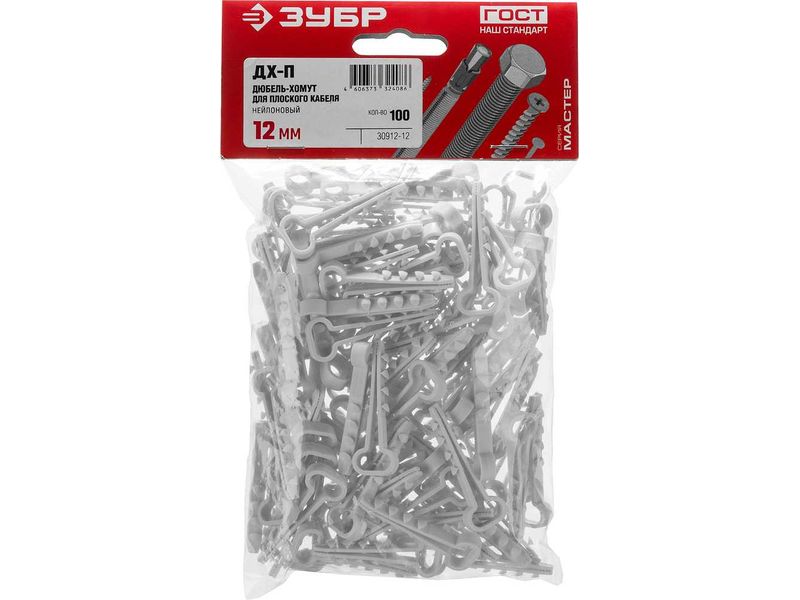 Дюбель-хомут для плоского кабеля ДХ-П, 12 мм, 100 шт, нейлоновый, ЗУБР