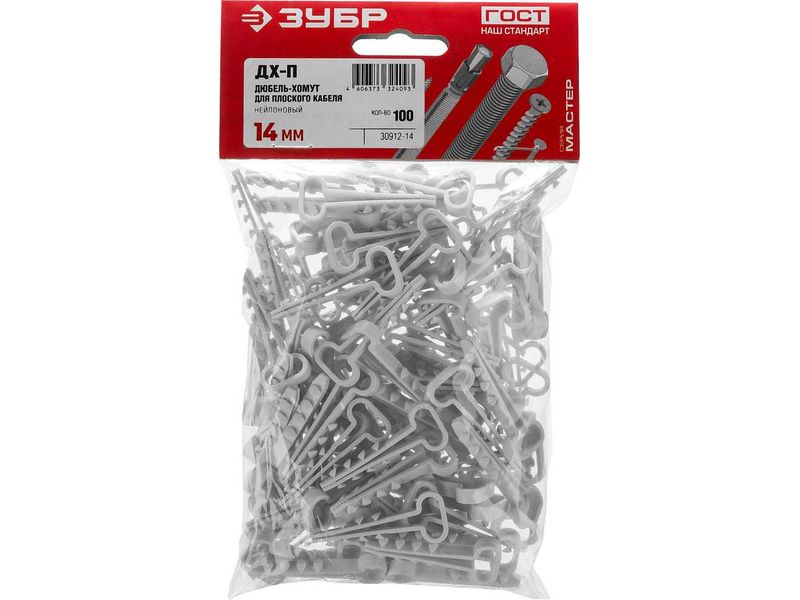 Дюбель-хомут для плоского кабеля ДХ-П, 14 мм, 100 шт, нейлоновый, ЗУБР