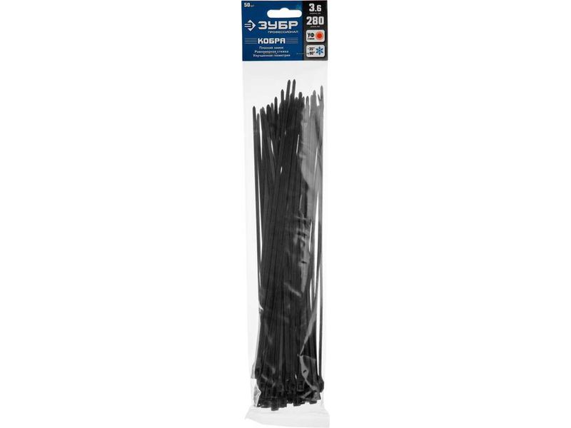 Кабельные стяжки черные КОБРА, с плоским замком, 3.6 х 280 мм, 50 шт, нейлоновые, ЗУБР