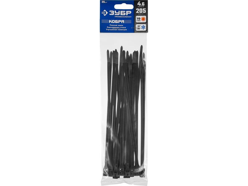 Кабельные стяжки черные КОБРА, с плоским замком, 4.6 х 205 мм, 25 шт, нейлоновые, ЗУБР