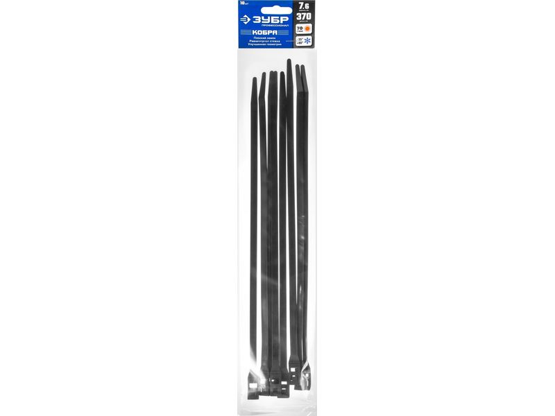 Кабельные стяжки черные КОБРА, с плоским замком, 7.6 х 370 мм, 10 шт, нейлоновые, ЗУБР