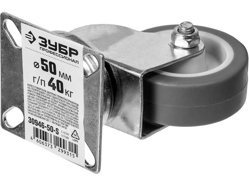 Колесо поворотное d 50 мм, г/п 40 кг, термопластич. резина/полипропилен, ЗУБР