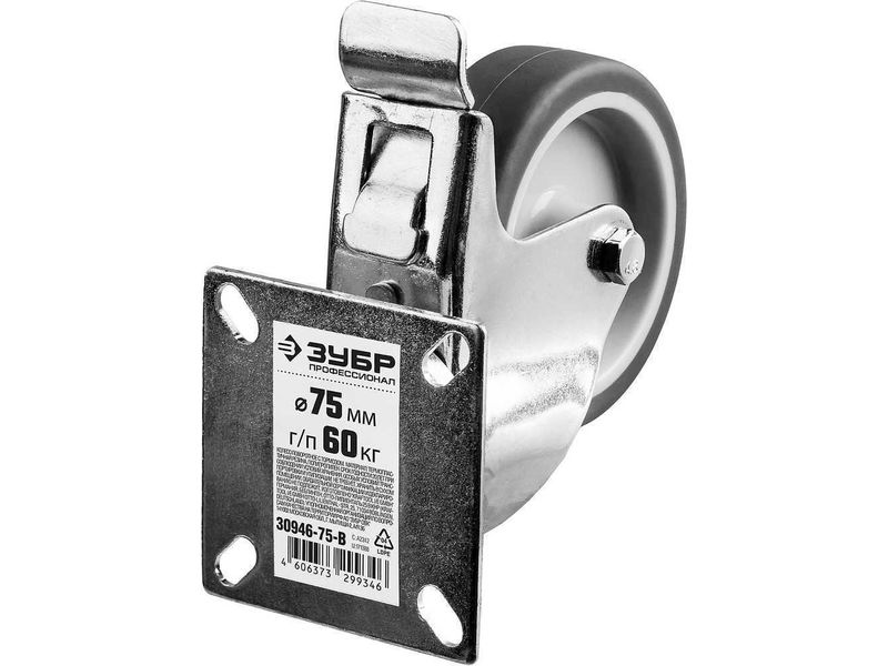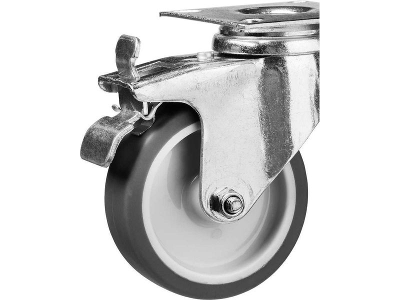 Колесо поворотное с тормозом d 75 мм, г/п 60 кг, термопластич. резина/полипропилен, ЗУБР