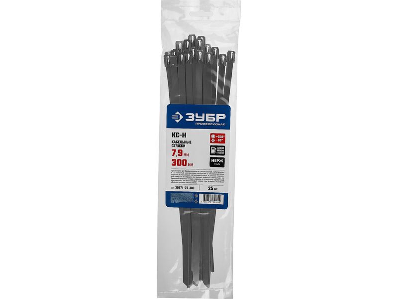 Кабельные стяжки нержавеющие КС-Н, 7.9 х 300 мм, 25 шт, ЗУБР