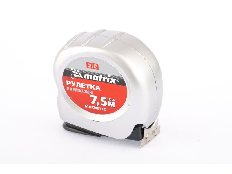 Рулетка Matrix Magnetic 31012 с лентой длиной 7,5 м и шириной 25 мм, с магнитным зацепом, используется для измерения различных предметов и расстояний. Имеет 2 класс точности и цену деления 1 мм. Магниты на зацепе позволяют фиксировать измерительное полотно на металлических объектах. Рулетка будет полезна во время ремонтных и строительных работ, пригодится также и в домашнем хозяйстве.