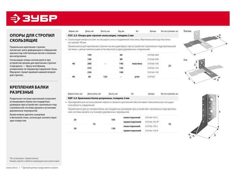 Скользящая опора для стропил СОС-2.0, угол 125х50х40 х 2мм, ЗУБР