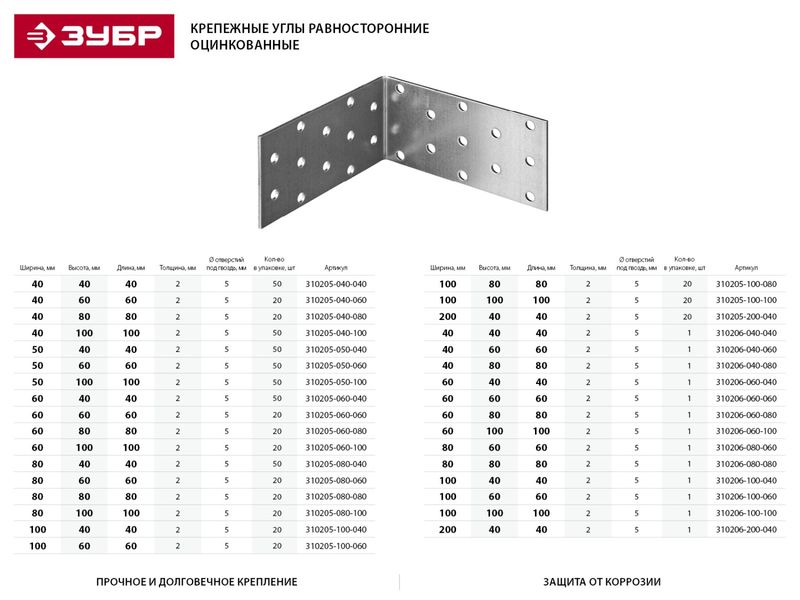 Крепежный угол ЗУБР МАСТЕР равносторонний, 60х60х60мм, 1шт