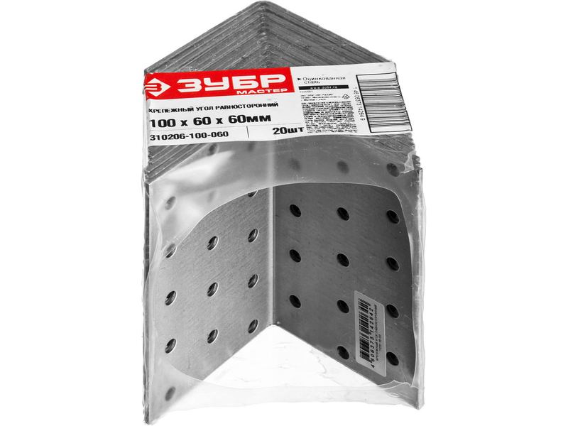 Крепежный угол ЗУБР МАСТЕР равносторонний, 100х60х60мм, 1шт
