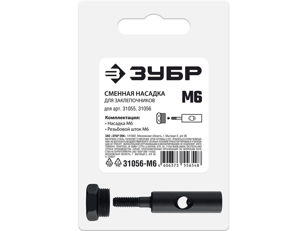 ЗУБР сменная насадка М6 для заклепочников 31055, 31056 (31056-M6)-61