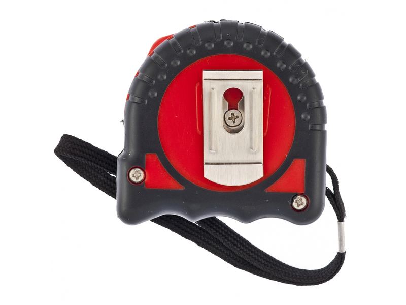 Комфортная транспортировка — нейлоновый ремешок позволяет подвешивать рулетку на запястье, при помощи металлической клипсы-зажима ее можно зафиксировать на поясе.