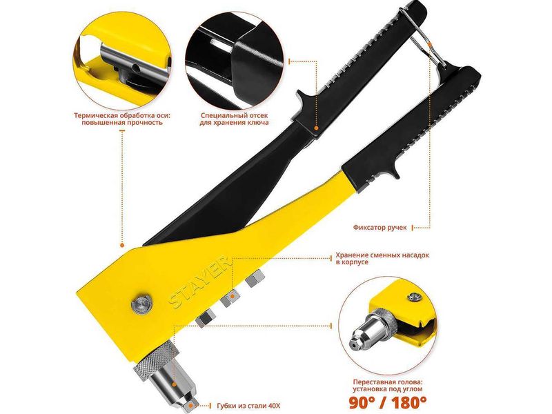 Заклепочник переставной 90-180°, STAYER MaxFix "MS 180" 3107, для заклёпок d-2,4-4,8 мм из алюминия, стальной корпус-61
