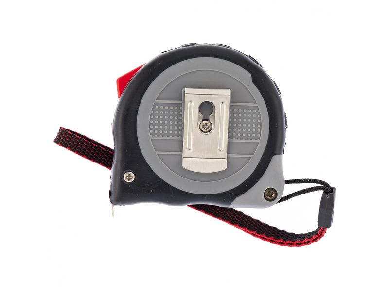 Дополнительные возможности — специальный ремешок позволяет носить рулетку на запястье, при помощи металлической клипсы-зажима инструмент можно зафиксировать на поясе.