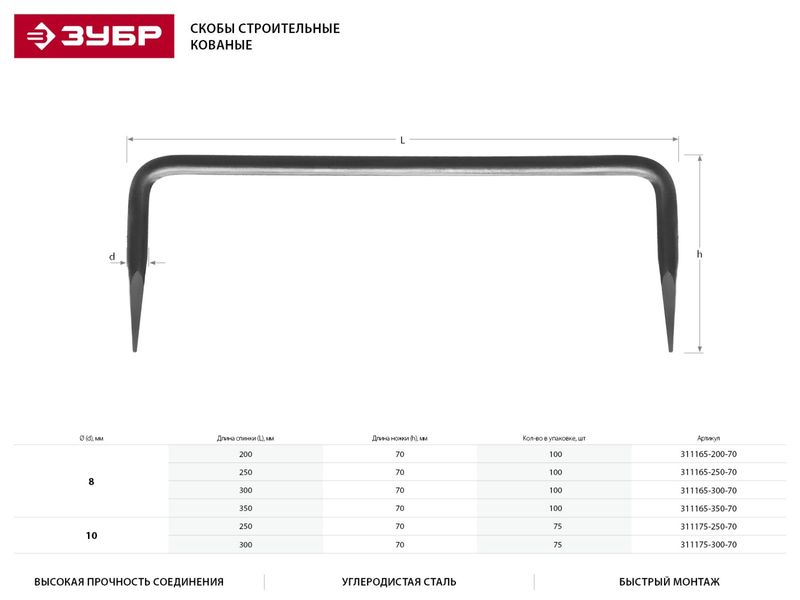 Скоба строительная кованая ЗУБР МАСТЕР , 10х250х70 мм, 75 шт-61