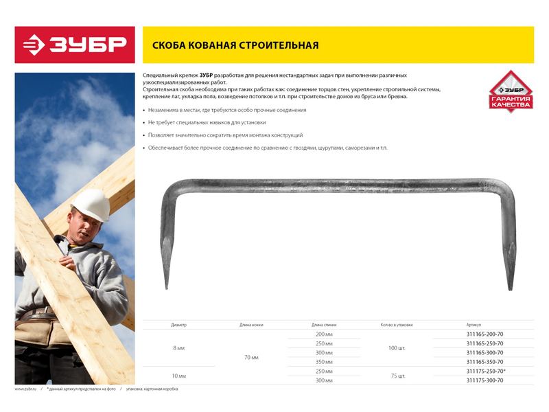 Скоба строительная кованая ЗУБР МАСТЕР , 10х300х70 мм, 75 шт-61