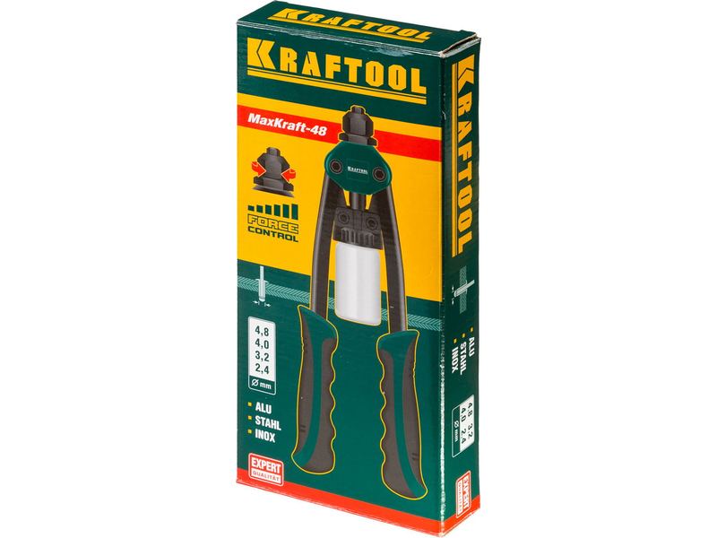 Заклёпочник KRAFTOOL EXPERT MaxKraft-48, заклёпки из Al, стали, нерж стали, регулят усил вытяг, d 2,4/3,2/4,8мм -61
