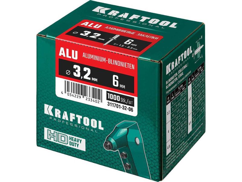 Алюминиевые заклепки Alu (Al5052), 3.2 х 6 мм, 1000 шт, KRAFTOOL