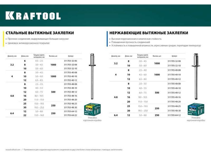 Купить Стальные заклепки Steel, 4.8 х 16 мм, 500 шт, KRAFTOOL