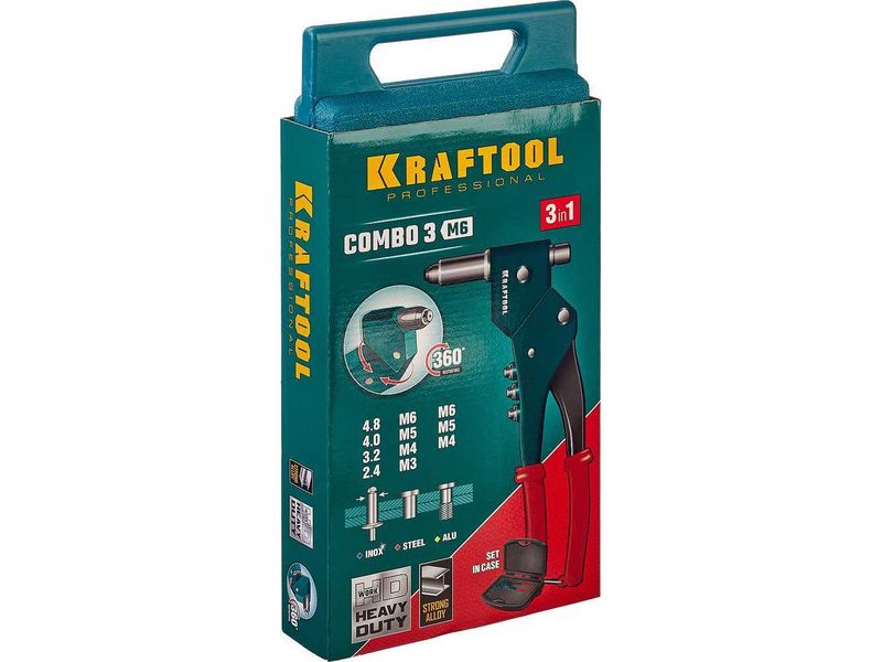 KRAFTOOL Combo3-M6 комбинированный заклепочник поворотный 0-360° в кейсе-61