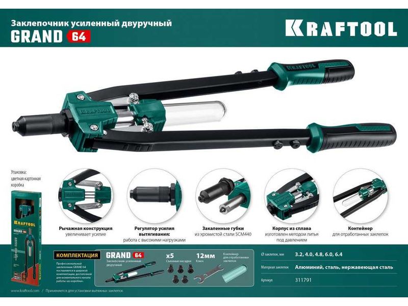 KRAFTOOL GRAND-64 усиленный двуручный заклепочник-61