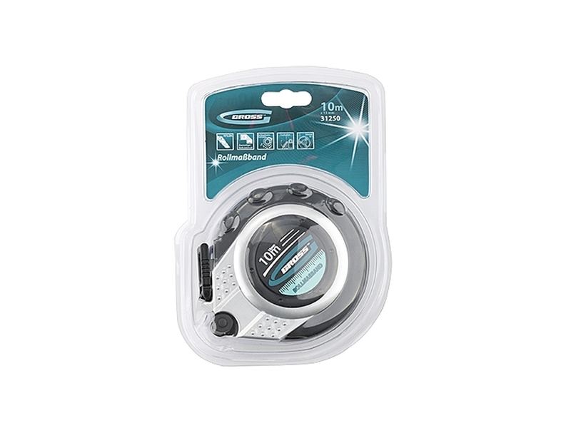 Геодезическая рулетка Gross Rollmassband 31250 в закрытом корпусе, с металлической лентой длиной 10 м и шириной 13 мм, с нейлоновым покрытием, используется для определения расстояний и размеров различных объектов. Комбинированный зацеп упрощает фиксацию измерительной ленты на измеряемой поверхности. Инструмент будет полезен на строительной площадке или земельном участке, а также во время проведения обмеров внутри помещений.