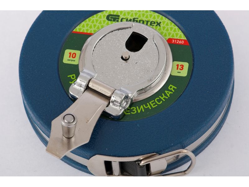 Геодезическая рулетка Сибртех 31260 с измерительным полотном длиной 10 м и шириной 13 мм, в закрытом корпусе, с фибергласовой лентой, — измерительный инструмент для определения расстояний и проведения замеров различных объектов. Рулетка пригодится во время выполнения строительных и ремонтных работ, обмеров садовых участков, а также при формировании ландшафтов.