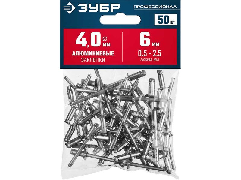 Алюминиевые заклепки, 4.0 х 6 мм, 50 шт., ЗУБР Профессионал