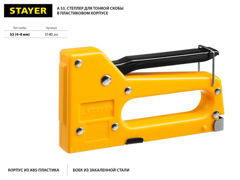 Пистолет STAYER "MASTER" скобозабивной пластмассовый, тип 53, 4-8мм