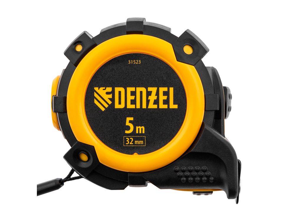 Рулетка Denzel 31523 с автоматической фиксацией полотна размером 5 м х 32 мм, с нейлоновым покрытием, магнитным зацепом и двухсторонней разметкой, предназначена для измерения расстояний и определения габаритов различных предметов. Лента автоматически фиксируется в вытянутом положении, что упрощает работу. Рулетка удобна для работы в труднодоступных местах, будет полезна во время строительных и ремонтных работ.