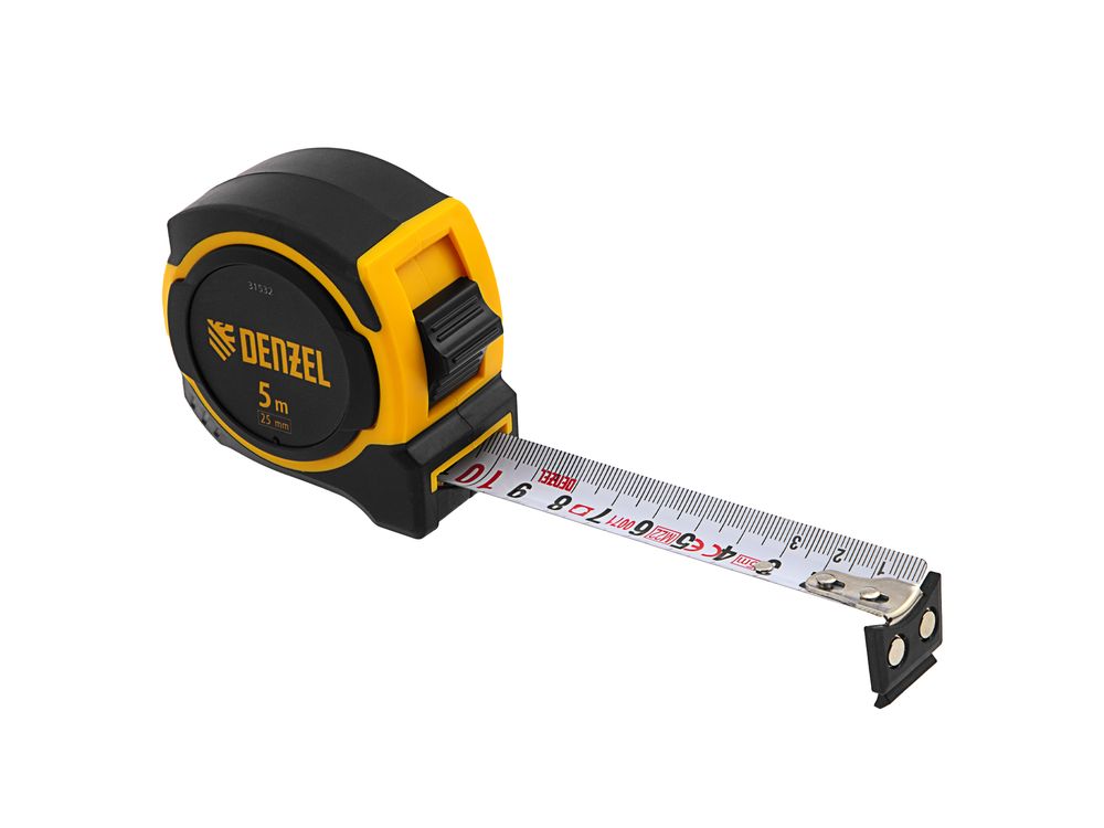 Рулетка Denzel 31532 в двухкомпонентном корпусе, с измерительной лентой шириной 25 мм и магнитным обрезиненным зацепом, позволяет определять размеры предметов и расстояния до 5 м. Широкая упругая лента упрощает проведение измерений в труднодоступных местах. Рулетка будет полезна при проведении строительных, ремонтных и различных бытовых работ.