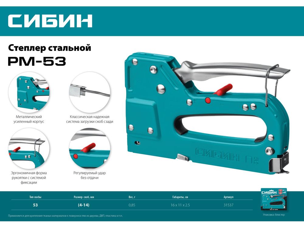 Купить СИБИН РМ-53 cтеплер стальной, тип 53