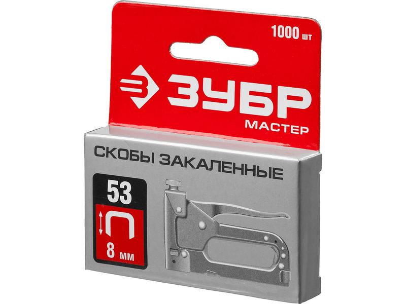 Скобы ЗУБР МАСТЕР закаленные, тип 53, 8мм, 1000 шт