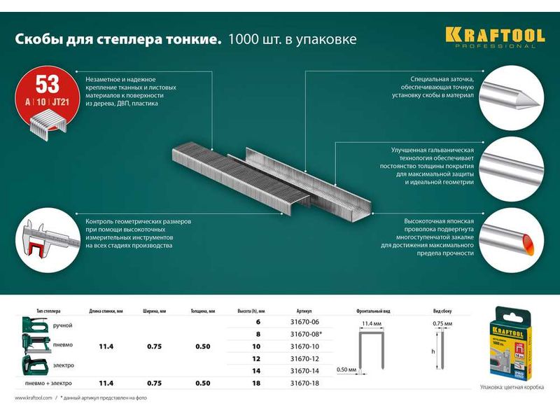 Профессиональные расходные материалы KRAFTOOL обеспечивают безупречное функционирование скобозабивного пистолета и наивысшее качество выполнения работ.