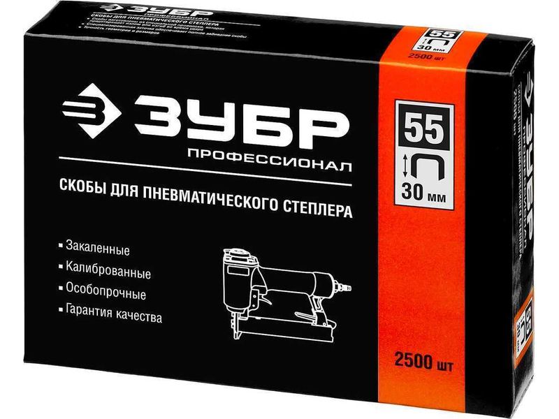 Скобы тип 55, 30 мм, особотвердые, ЗУБР "ПРОФЕССИОНАЛ" 31855-30, 2500 шт