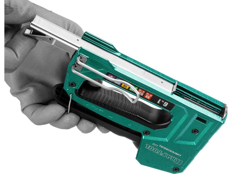 Запатентованная инновационная конструкция, позволяющая работать с различными типами скоб и гвоздей