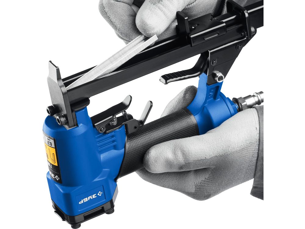 Профессиональный пневматический скобозабиватель. Произведен из высококачественных материалов, позволяет быстро и эффективно выполнить свою работу.