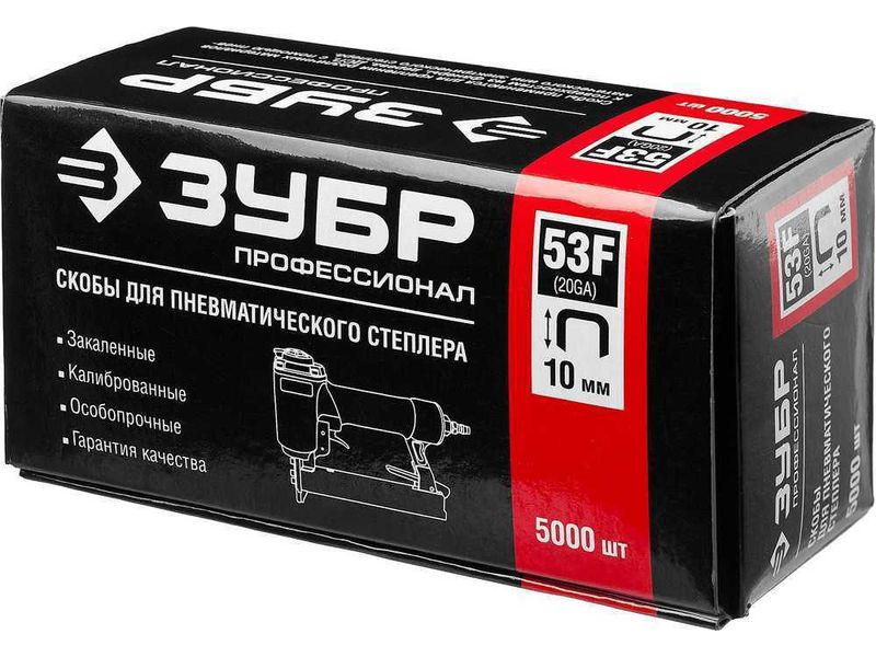 Скобы тип 53F, 10 мм, особотвердые, ЗУБР "ПРОФЕССИОНАЛ" 31950-10, 5000 шт