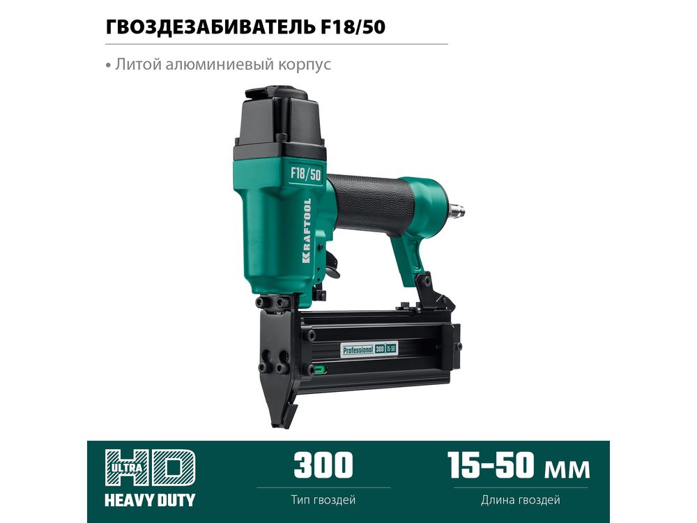 Пневматический нейлер (гвоздезабиватель) KRAFTOOL F18/50, гвозди тип 300 (15-50 мм)Пневматический нейлер (гвоздезабиватель) KRAFTOOL F18/50, гвозди тип 300 (15-50 мм)Пневматический нейлер (гвоздезабиватель) KRAFTOOL F18/50, гвозди тип 300 (15-50 мм)