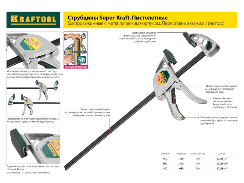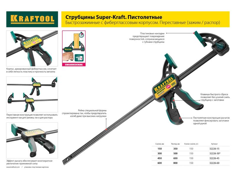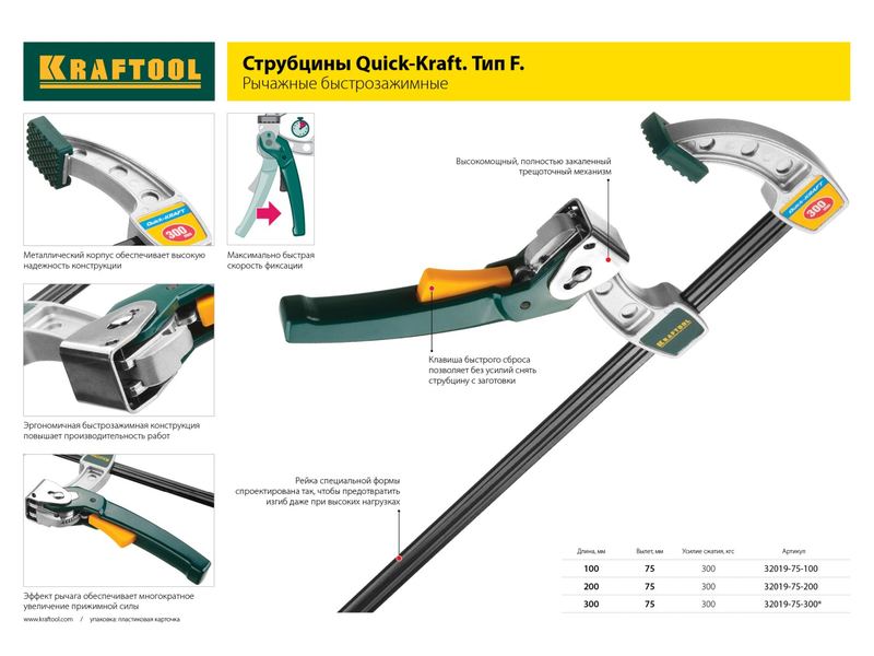 Купить Струбцина KRAFTOOL EXPERT, тип F, DIN 5117, двухкомпонентная ручка, 80х300мм