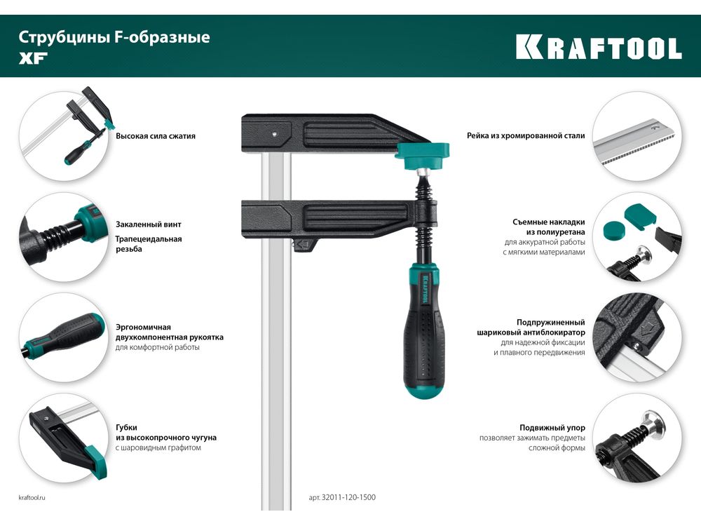 Купить KRAFTOOL XF-1500/120 120х1500 мм, Струбцина F (32011-120-1500)
