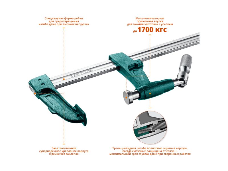 Мощная струбцина с мультипликаторной прижимной втулкой