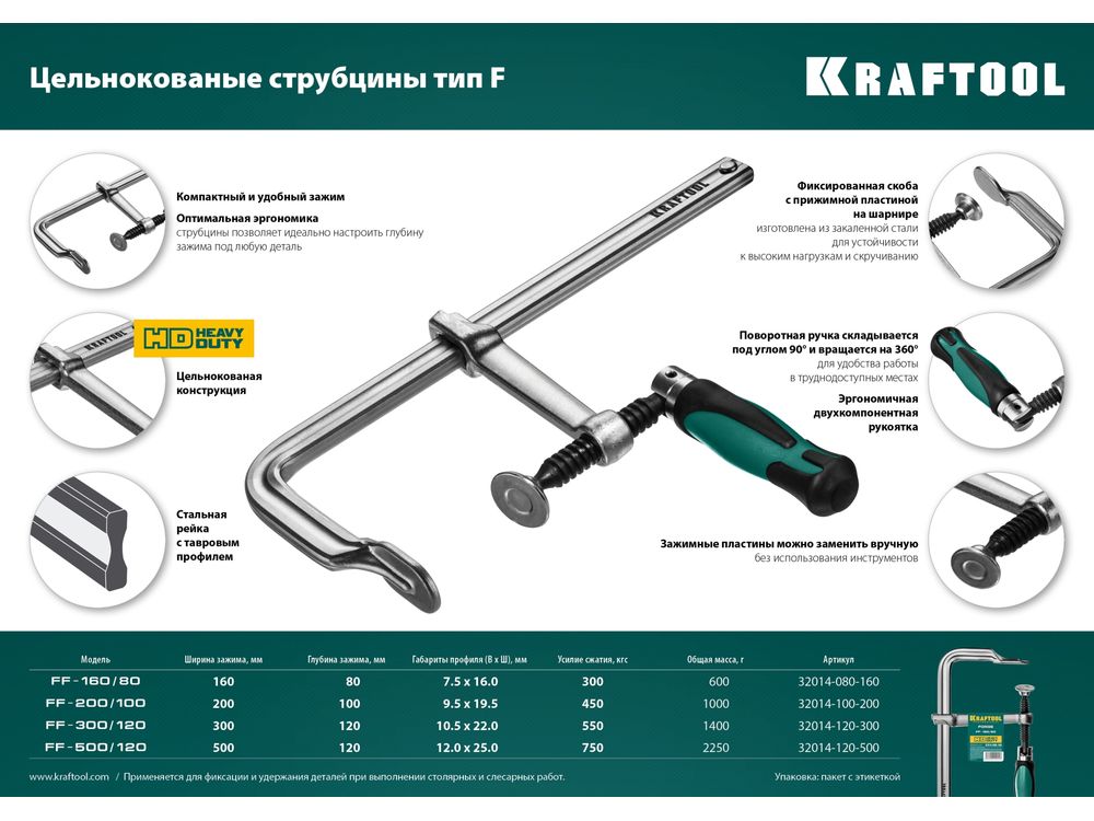 FORGE FF-500/120 струбцина тип F 500/120 мм, 750 кгс, KRAFTOOL-50