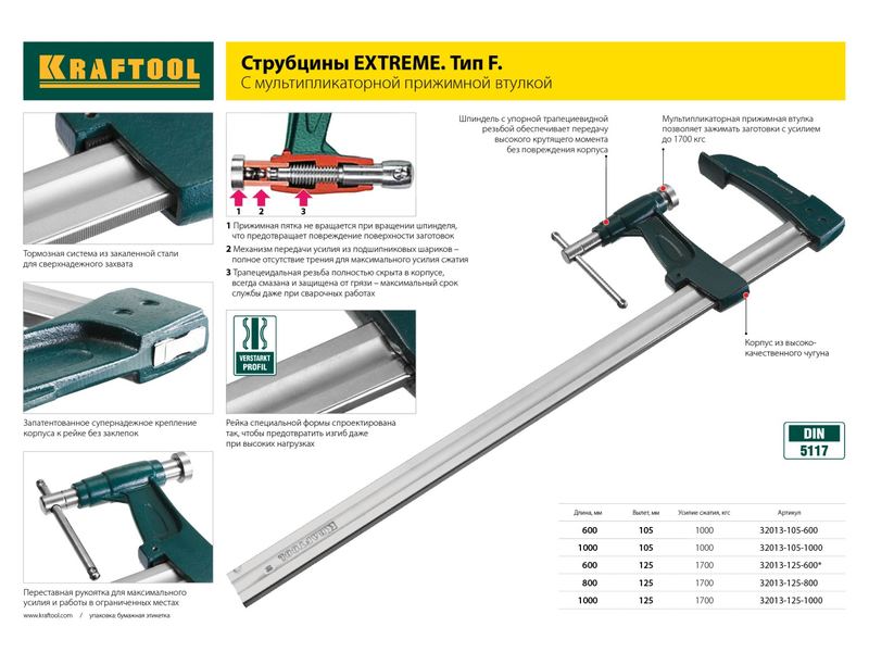 Профессиональные струбцины KRAFTOOL EXTREM G с литым металлическим корпусом, соответствуют самым высоким техническим требованиям. Корпус изготовлен из высокопрочного чугуна с добавлением шаровидного графита и имеет высокую стойкость к ударным воздействиям при выполнении тяжелых слесарных работ. Обладают повышенным ресурсом, обеспечивают длительную и качественную работу.