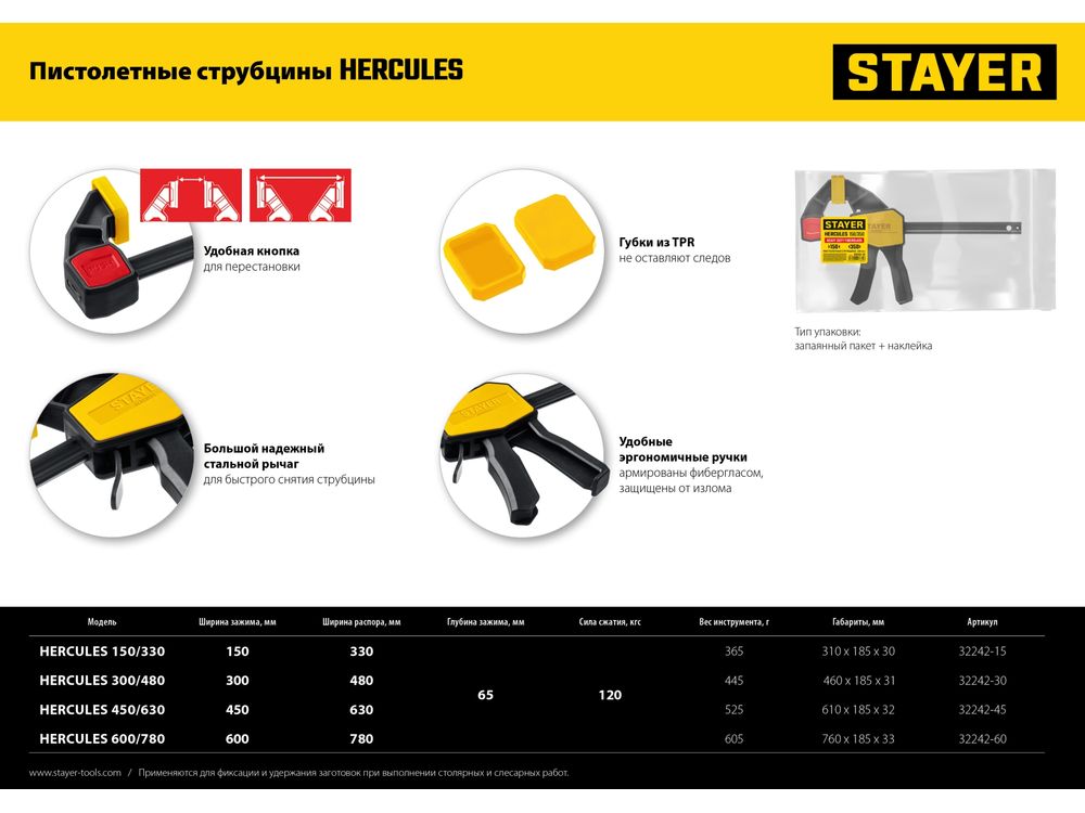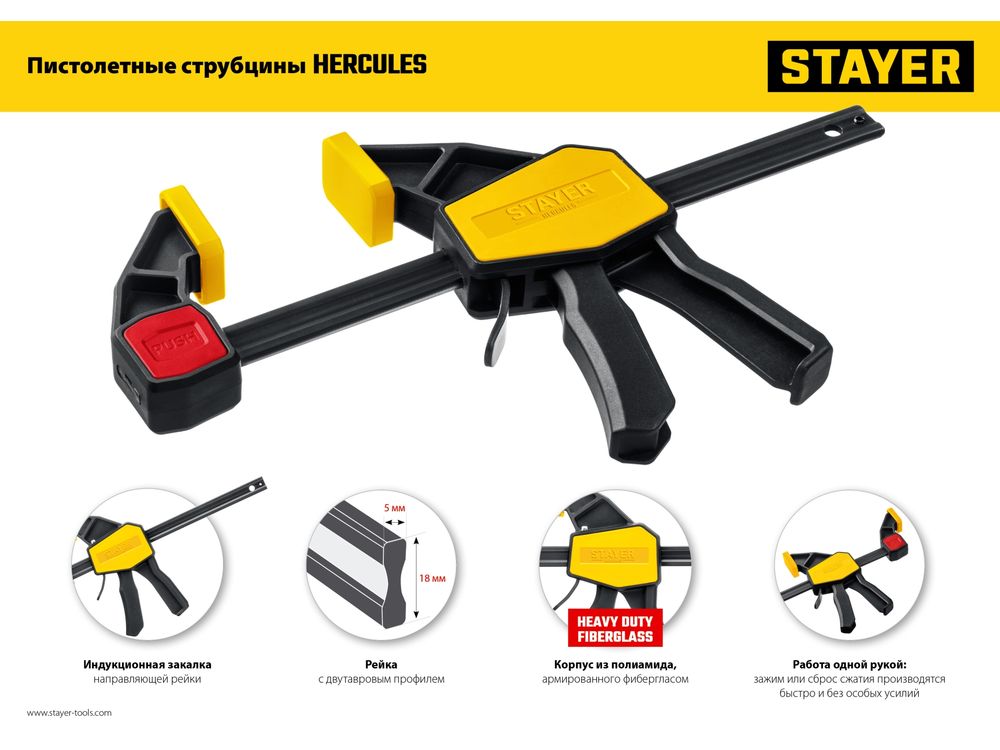 STAYER Hercules, 150/330 мм, пистолетная струбцина, Professional (32242-15)Следующий товар