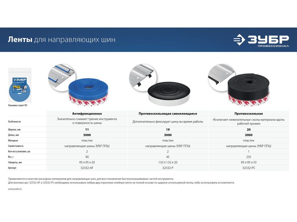 ЗУБР ППШ, 3 м, противоскольная лента для направляющих шин, Профессионал (32332-PS)